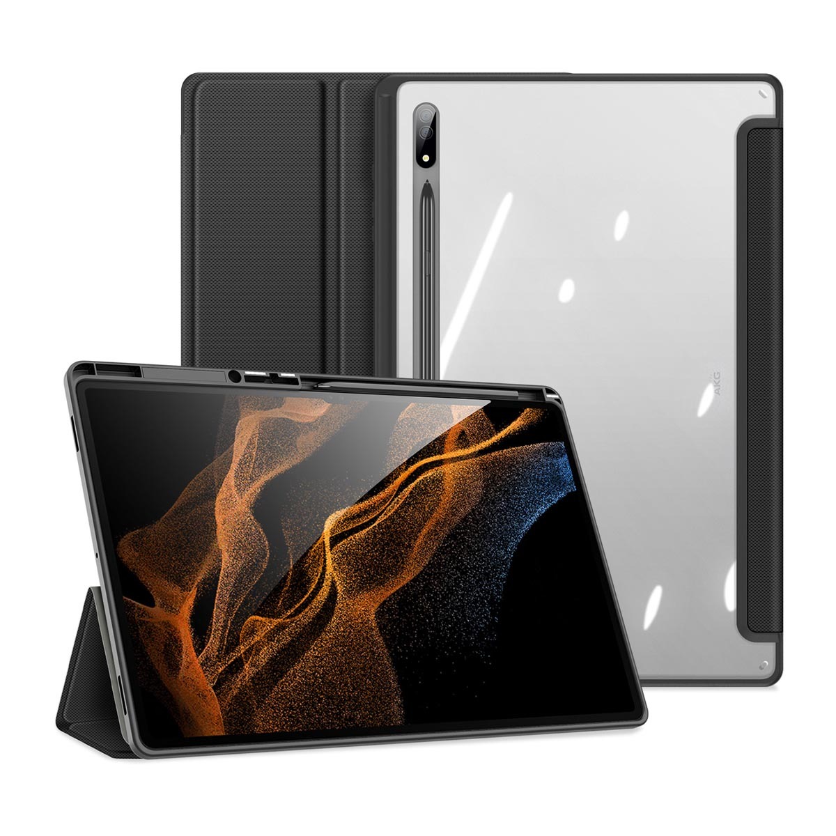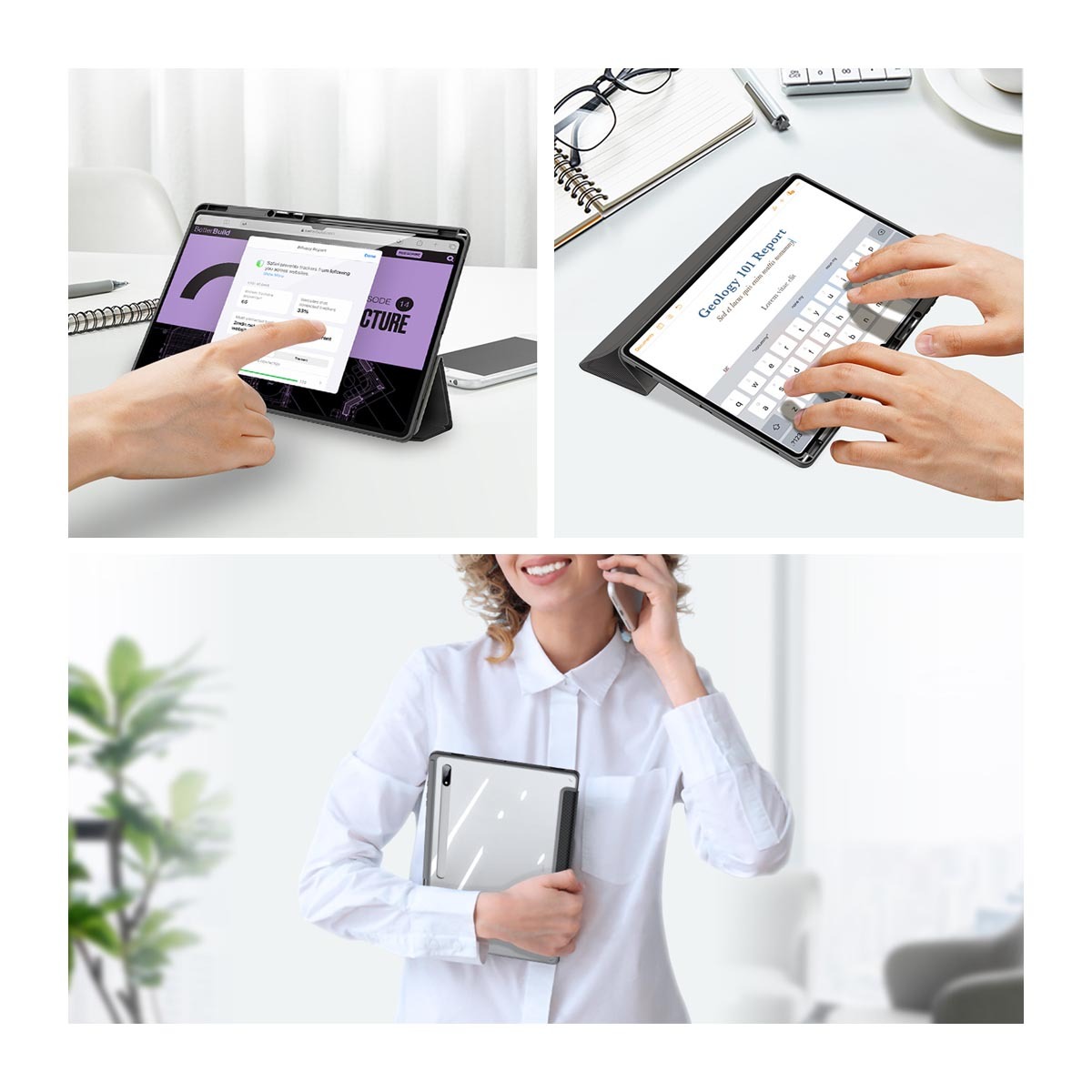 Samsung Galaxy Tab S8 Ultra Dux Ducis Toby -suojakuoret on erittäin tyylikäs ja käytännöllinen valinta. Suojakuoressa on automaattinen sleep/wake-toiminto, jonka avulla näyttö syttyy kun kuoren avaa, ja se sammuu kun se suljetaan. Kaikki näppäimet ja portit jäävät helposti käytettäviksi. Kotelon takaosa on läpinäkyvä, kuori on tyylikkään Musta.