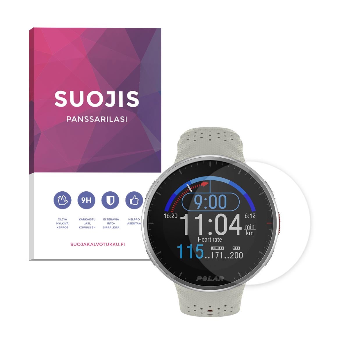 Polar Pacer Pro klassinen Suojis®-panssarilasi on tehokas suoja, joka asettuu kellosi näyttöön ja säilyttää sen alkuperäisen kosketusherkkyyden. Materiaali on aitoa japanilaista AGC-lasia. Tämä laadukas 9H-vahvuinen ja vain 0,33 mm:n paksuinen panssarilasi on helppo kiinnittää, poistaa ja pitää siistinä.